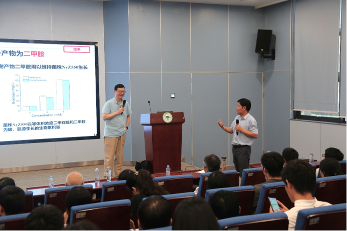 讲座结束后,现场师生积极发言,就污染物降解课题的研究思路,微生物降解污染物中功能酶的筛选及宏基因组分析在微生物降解污染物领域的应用等相关问题与周教授展开了深入的交流讨论。