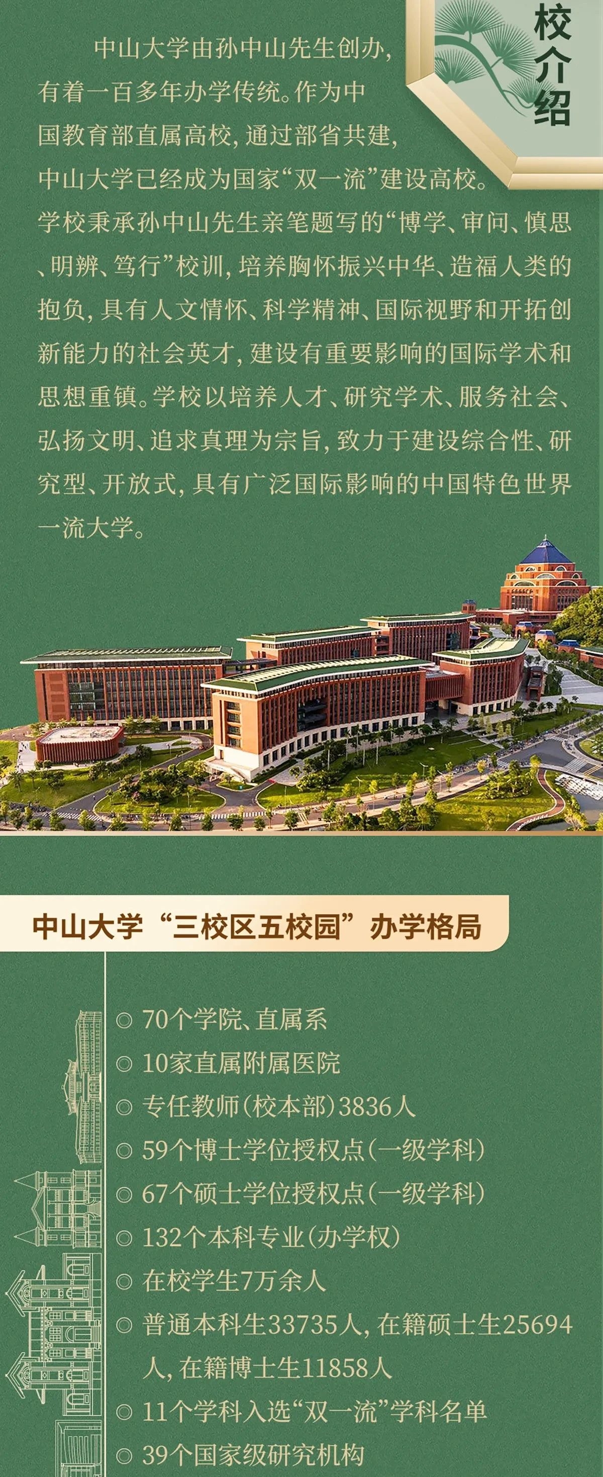 学院位于广州校区南校园,拥有水产动物疫病防控与健康养殖全国重点实验室、中国-东盟海水养殖技术“一带一路”联合实验室、国家生猪技术创新中心华南分中心、基因功能与调控教育部重点实验室、生物学国家实验教学示范中心等多个国家及省部级科研教学平台。2024年正式成立进化与合成生物学基础科学中心。学院发展特色鲜明,学科优势突出,综合实力排名处于全国同类学科领先地位。现有学科中,生物学为国家一级重点学科,生物学和生态学为国家首批“双一流”建设学科。近年来,学院以生命科学大楼建设为契机,重点打造“生命科学仪器设备共享中心”,形成了通用生物技术平台、组学与生物信息平台、植物与昆虫生态互作平台、动物研究平台和微生物与生物安全平台,为学院科学研究和人才培养提供了更大的便利。