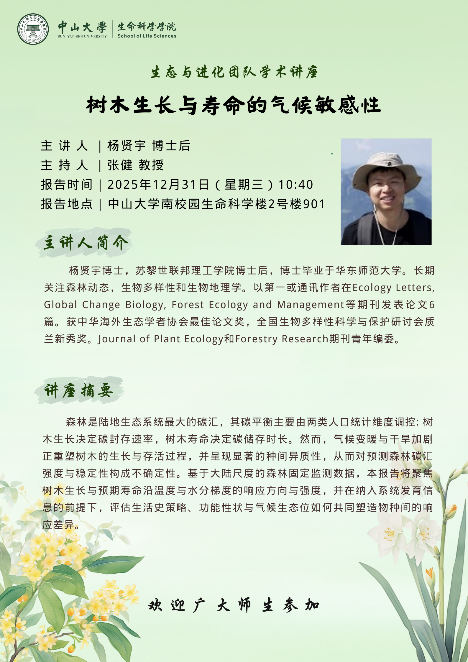 2025年12月31日生态与进化团队讲座:树木生长与寿命的气候敏感性