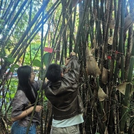 鉴于竹类植物极少开花结果,形态分类存在较大难度,加之专业分类学者稀缺,园内竹种的精确鉴定一直是一项挑战。即便曾邀请华南植物园的竹类研究专家进行鉴定,也因难度过大而未能完成。而今,基于分子序列的DNA条形码技术为竹类植物的精确鉴定提供了全新途径。生命组学教职工党支部在持续六年的园区维护基础上,充分发挥专业优势,带领学生完成了全园竹种的调查、定位、鉴定和挂牌工作,建立起完整的竹种植物名录,为教学科研和科普服务提供了坚实基础。