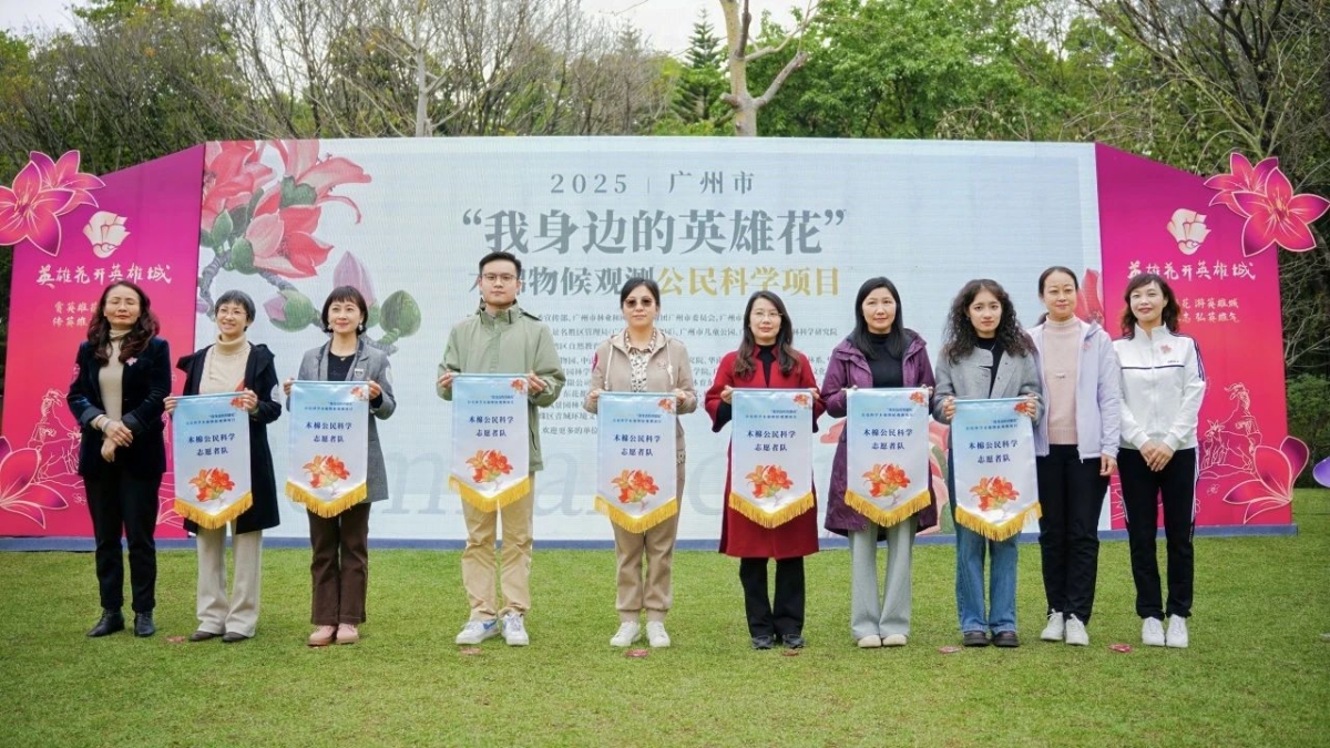 202539日,英雄花开·童植绿美”——湾区少年迎十五运植英雄树活动在广州市云溪植物园隆重举行。本次活动由中共广州市委宣传部、广州市林业和园林局、共青团广州市委员会、广州市科学技术协会联合指导,广州市白云山风景名胜区管理局(云溪植物园)、广州市儿童公园、广州市林业和园林科学研究院主办。海角论坛 国家公园与自然教育研究院作为重要支持单位,参与2025广州市我身边的英雄花木棉物候观测公民科学项目的启动仪式,被授予志愿者队旗。目前,研究院已组建志愿者队伍,并顺利开展第一期活动,通过木棉及物候观测理论知识学习,与实地开展校园木棉观测实践,初步取得良好成效。