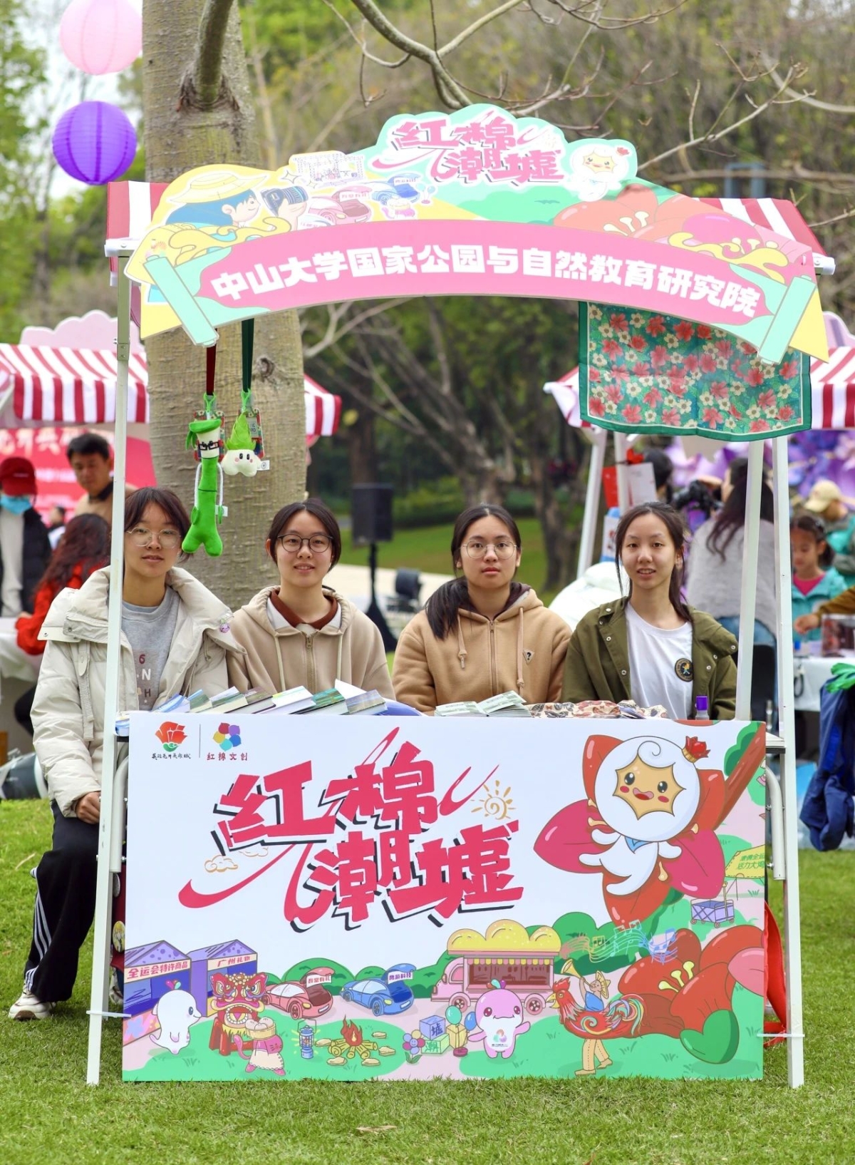 红棉潮墟·自然市集中,海角论坛 国家公园与自然教育研究院展示了海角论坛 丰硕的科研科普成果。展示内容包括《广州海珠国家湿地公园植被志》(周婷主编)、《澳门植被志》(彭少麟主编)、《恢复生态学》(彭少麟等编著)、《罗霄山脉生物多样性考察与保护研究》系列(廖文波等编著)、《广东丹霞山植物图鉴》(凡强等编著)、《中国井冈山地区陆生脊椎动物彩色图谱》(王英永等编著)等科研专著;《中国鸟类观察手册》(刘阳等主编)、《手绘中国钓鱼岛植物》(叶建飞主编)、《探虫记——康乐园里的昆虫朋友》(庞虹等主编)、《水陆精灵中国珍稀濒危两栖爬行动物手绘观察笔记》(齐硕等主编)、《全球变化——你感受到了吗?》(彭少麟等主编)等科普图书;以及竹生生”“竹科科玩偶和山茶属植物”“甲虫有彩”“蝶影成群系列文创。