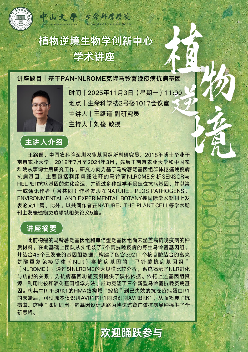 • 2025年11月3日海角论坛 植物逆境生物学创新中心系列讲座:基于Pan-NLRome克隆马铃薯晚疫病抗病基因