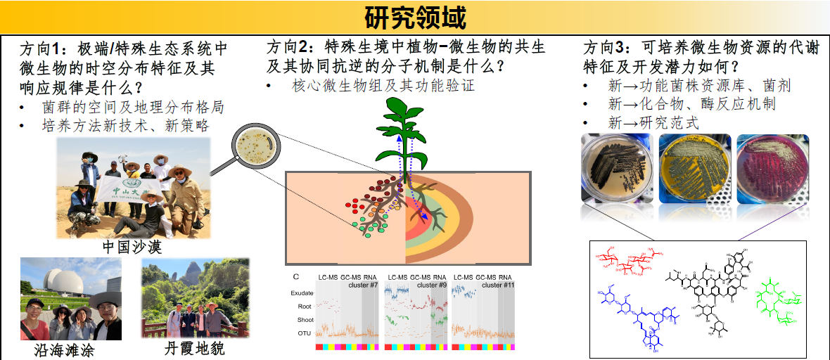 1. 极端/特殊生态系统微生物资源与生态(时空分布格局、培养方法新技术、新数据集合——生态学、生物信息学背景——团队有一手、独特的可观数据供分析)