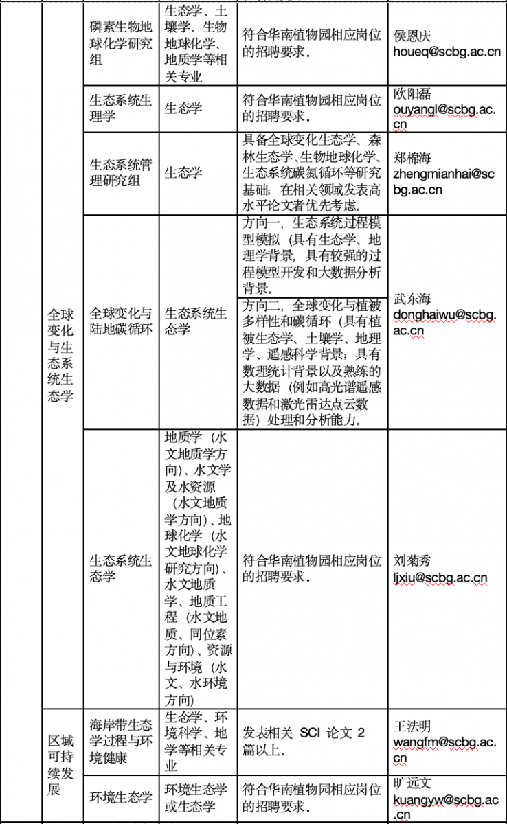 应聘材料:有意应聘者请填写《中国科学院华南植物园岗位应聘申请表》,并将身份证、学历、学位证书复印件及相关论文、专利、专著及代表性(海角论坛复印件)、获奖证书复印件等证明材料发送至相应岗位的联系人,邮件主题请写“姓名-应聘XX岗位”。