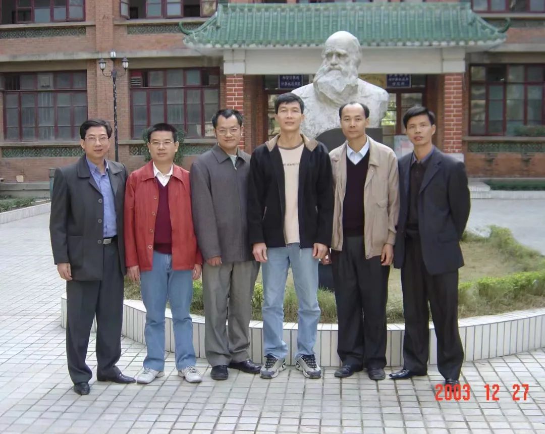 图为生物系79级校友于2001年返校时留影,由生物系79级校友提供