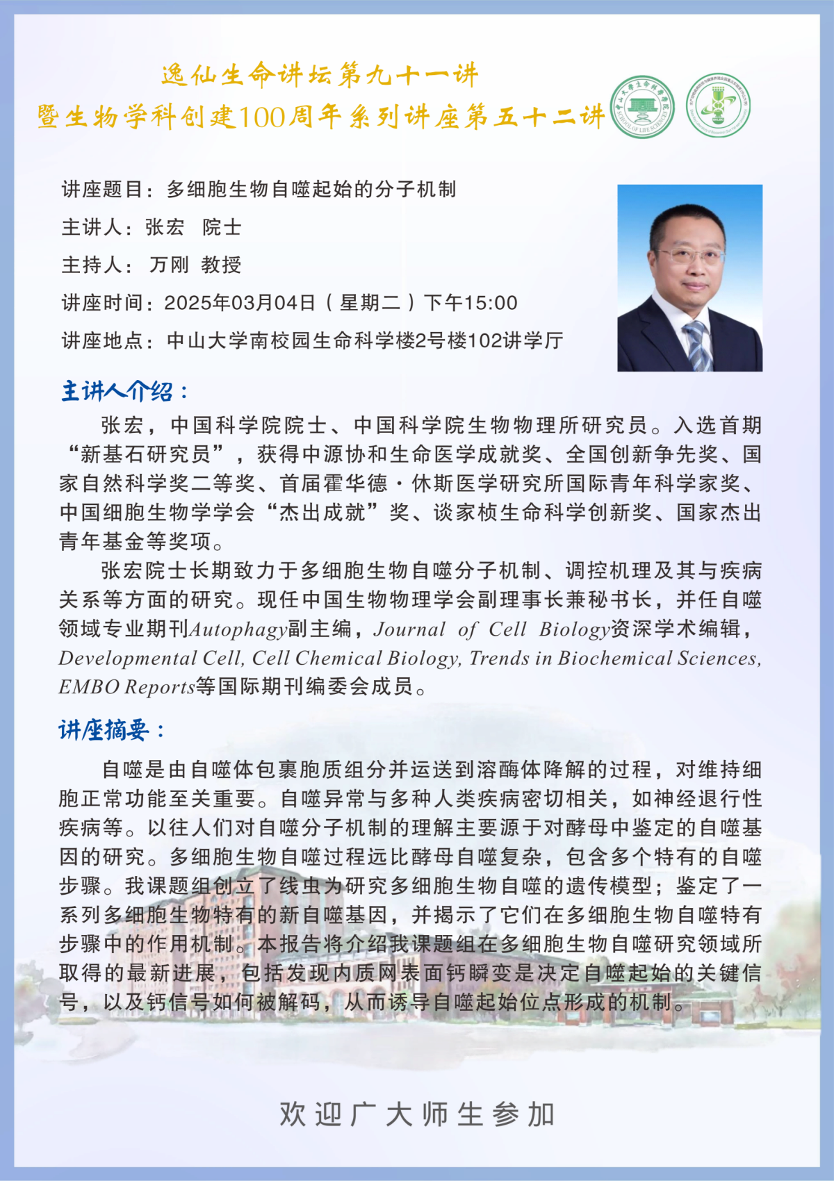 导航痕迹 海角论坛 科学研究 学术讲座 生物学科创建100周年系列第五十二讲:多细胞生物自噬起始的分子机制 扫描此二维码分享 生物学科创建100周年系列第五十二讲:多细胞生物自噬起始的分子机制 发布人:董静飞 发布日期:2025-02-28