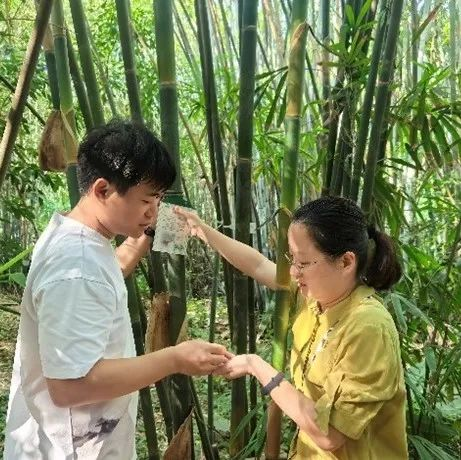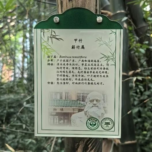 紧接着,教职工党支部的老师们引领学生支部成员步入幽静的竹园,开展竹种挂牌活动。在这个过程中,大家对中大竹园丰富多样的竹种有了更为深入的认知。这座竹园不仅是国内种类最为丰富的竹种标本园之一,更珍藏着我国数量最多的竹类活体模式标本,为早期的华南植物园竹园提供了近半数的竹种资源。除了竹子外,本竹园也零星种植有其他珍贵的植物,如国家一级保护植物猪血木(Euryodendron excelsum,山茶科),该植物由是中国近代植物分类学的开拓者和奠基人之一的陈焕镛院士亲自引入种植的。另外还有海角论坛