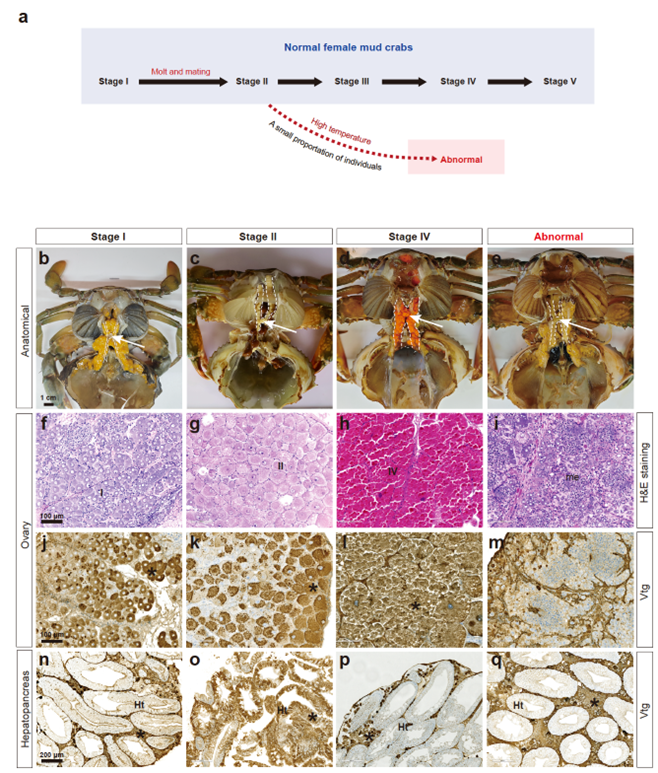 该研究的通讯作者之一、海角论坛 何建国教授指出:“气候变暖显著影响变温动物的发育与繁殖。前期研究发现变温动物可通过行为和生理变化适应气候变暖。我们的研究结果表明,卵生变温动物也具有卵巢发育高温适应的遗传机制。这一发现对理解卵生变温动物如何适应气候变暖具有重要意义。其次,我们的研究揭示了“黄油蟹”的形成机制,为“黄油蟹”的人工培育和我国青蟹养殖产业的可持续发展提供了有力支撑。”