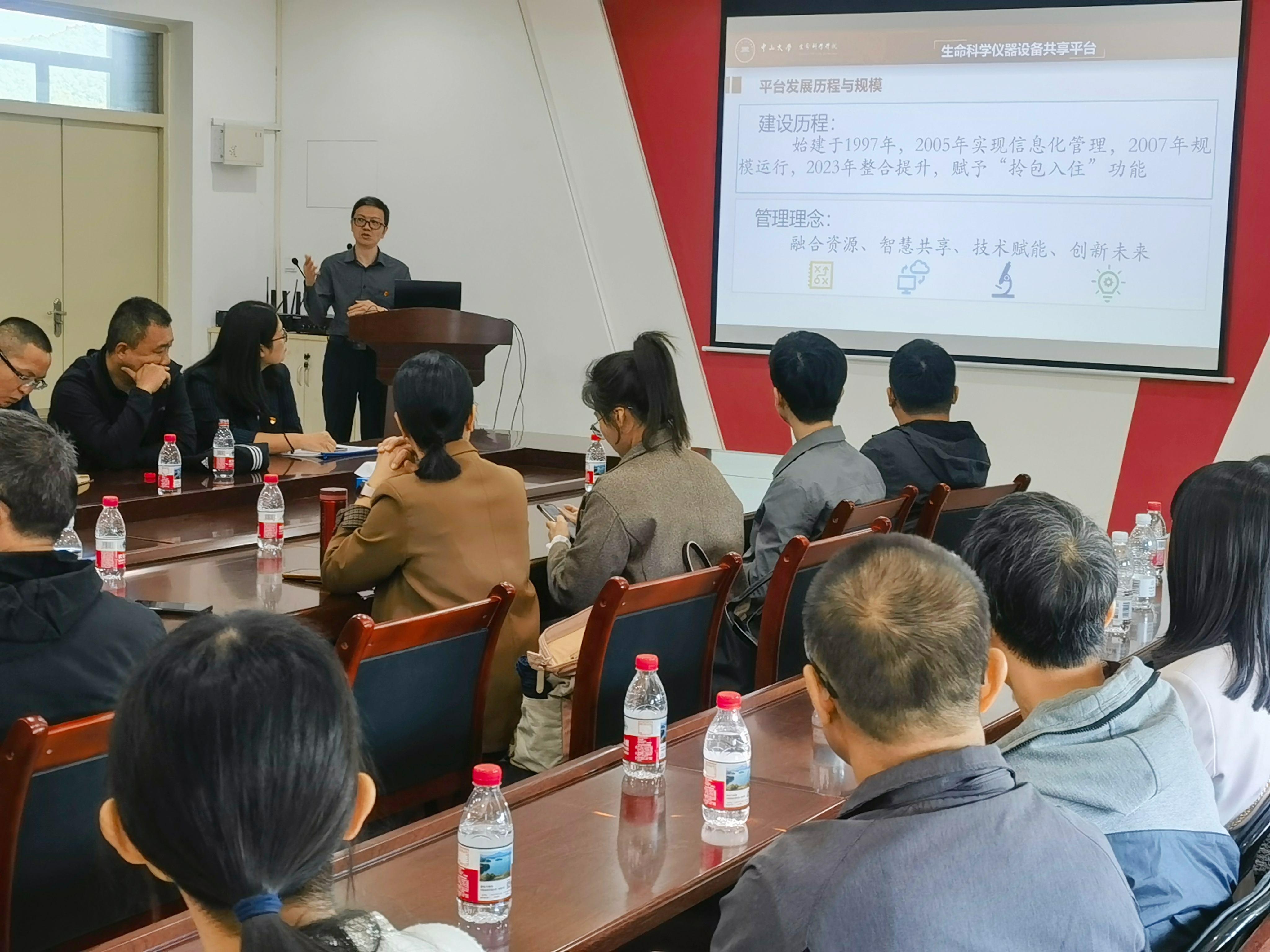 座谈中,我院实验中心副主任何键同志结合中心平台建设、技术支撑与科教融合方面的创新实践经验,围绕“四个聚焦”展开交流:在集约化管理方面,构建“1+N”仪器设备共享平台,每年支撑国家级重点项目150余项,高质量论文发表超250篇。在智能化管理与安全运维方面,平台集成数据可视、智能预约、远程监控等功能,建立完善的仪器维护与质控体系,通过每日环境巡查、故障快速响应等措施,保障设备稳定运行,同时深入践行“安全第一”理念,近十年未发生重大安全事故。针对人才队伍建设,实施“双向融合”培养计划,鼓励专业技术人员到国内外进行交流学习,加入科研团队,既精准对接科研需求又提升自身业务水平。在科教融合创新层面,建立“科研仪器开放共享+创新课程双轨制”,一方面将大型科研仪器面向本科生开放,另一方面通过面向本科生开设《生命科学实验仪器与使用》等课程,结合多色流式、质谱分析等技术展示,激发学生科研兴趣,真正实现“科研反哺教学、教学促进科研”的良性循环。
