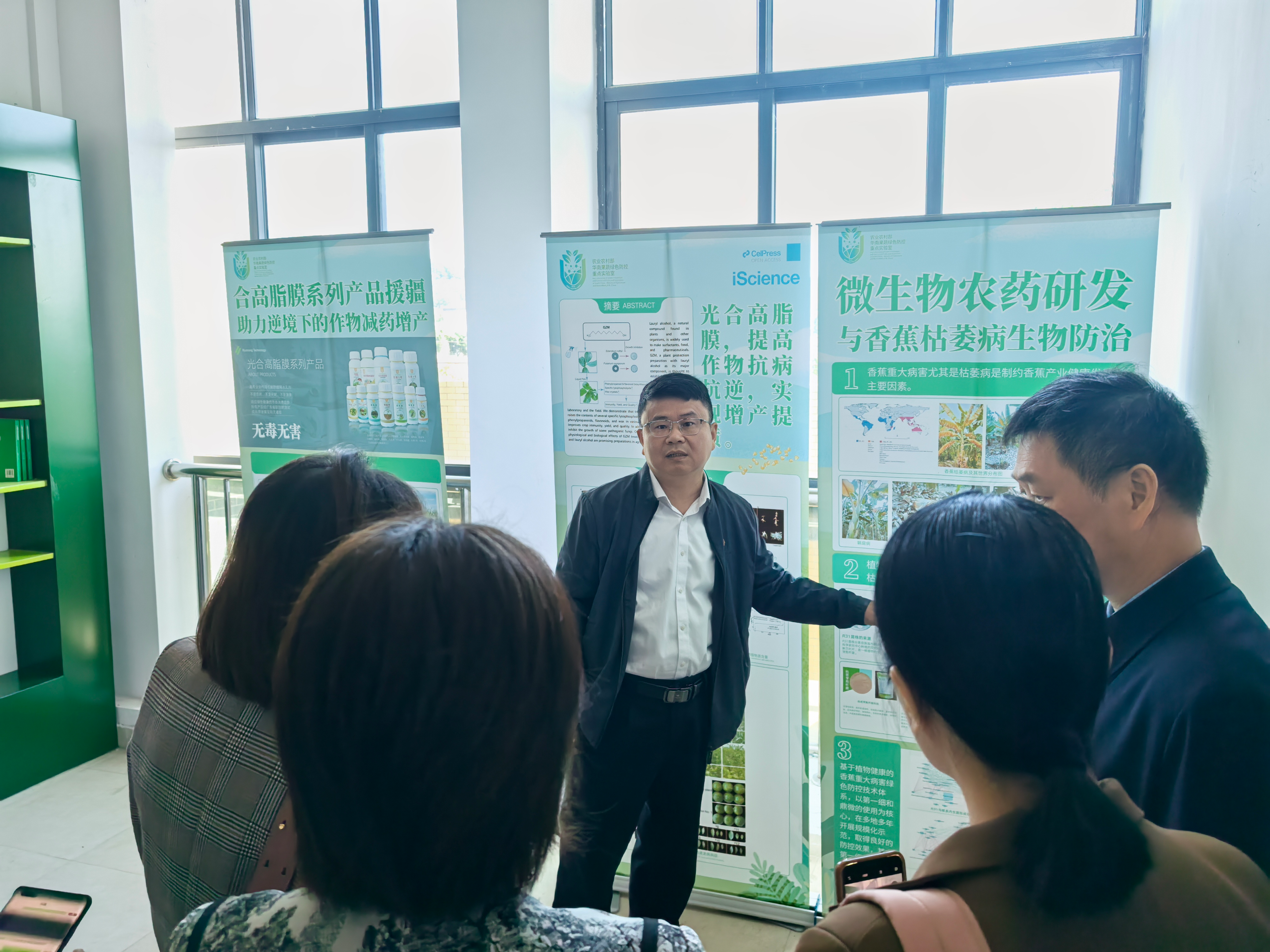 活动伊始,仲恺农业工程学院农业与生物学院院长喻国辉教授对我院实验中心党支部一行表示热烈欢迎。他表示,此次结对共建是落实教育部“对标争先”建设计划的重要实践,通过“一融双高”党建引领搭建的交流平台,将有效促进两校在教学科研、人才培养、社会服务各项事业高质量发展。喻国辉教授系统介绍了学院“三全五育”工作体系,分享了基层党建工作经验,带领我们参观农业农村部华南果蔬绿色防控重点实验室和本科教学实验室,重点介绍了实验室自主研发的两类市场转化成果:一是通过援疆项目实现逆境作物减药增产的高脂膜系列产品;二是针对香蕉枯萎病建立的“病种精准鉴定-生物防治”微生物农药体系,相关产品与技术已在全国推广应用,引发与队人员热烈讨论。