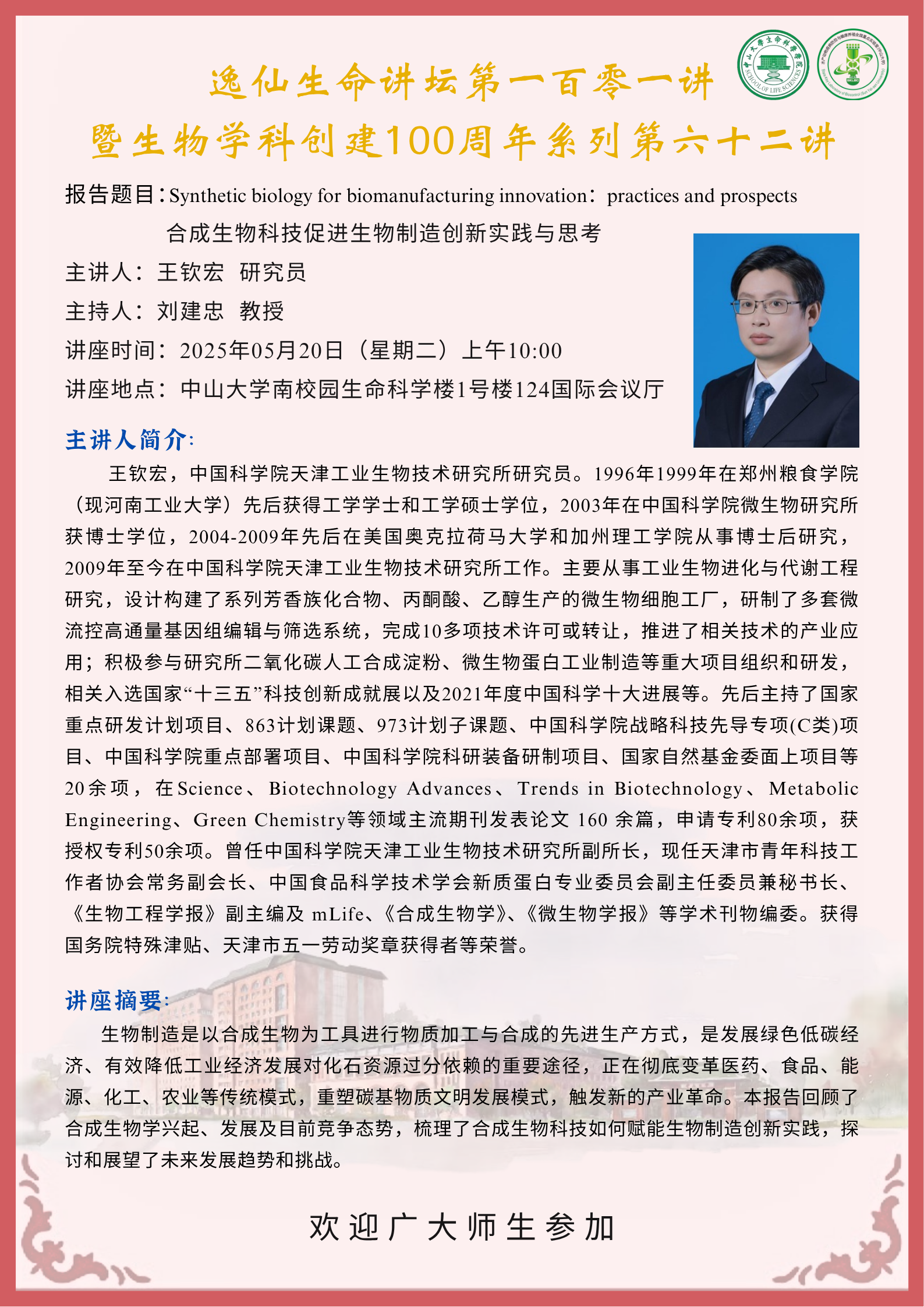 2025年5月20日海角论坛 逸仙生命讲坛第一百零一讲:合成生物科技促进生物制造创新实践与思考