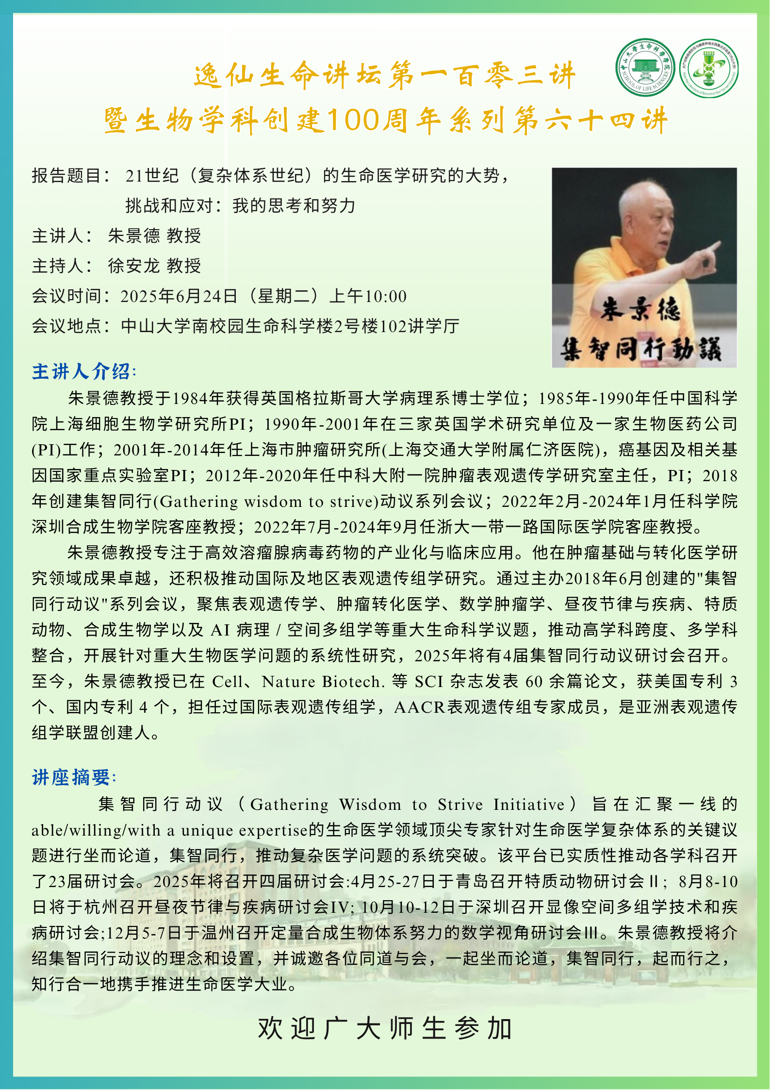 2025年6月24日海角论坛 逸仙生命讲坛第一百零三讲:21世纪(复杂体系世纪)的生命医学研究的大势,挑战和应对:我的思考和努力