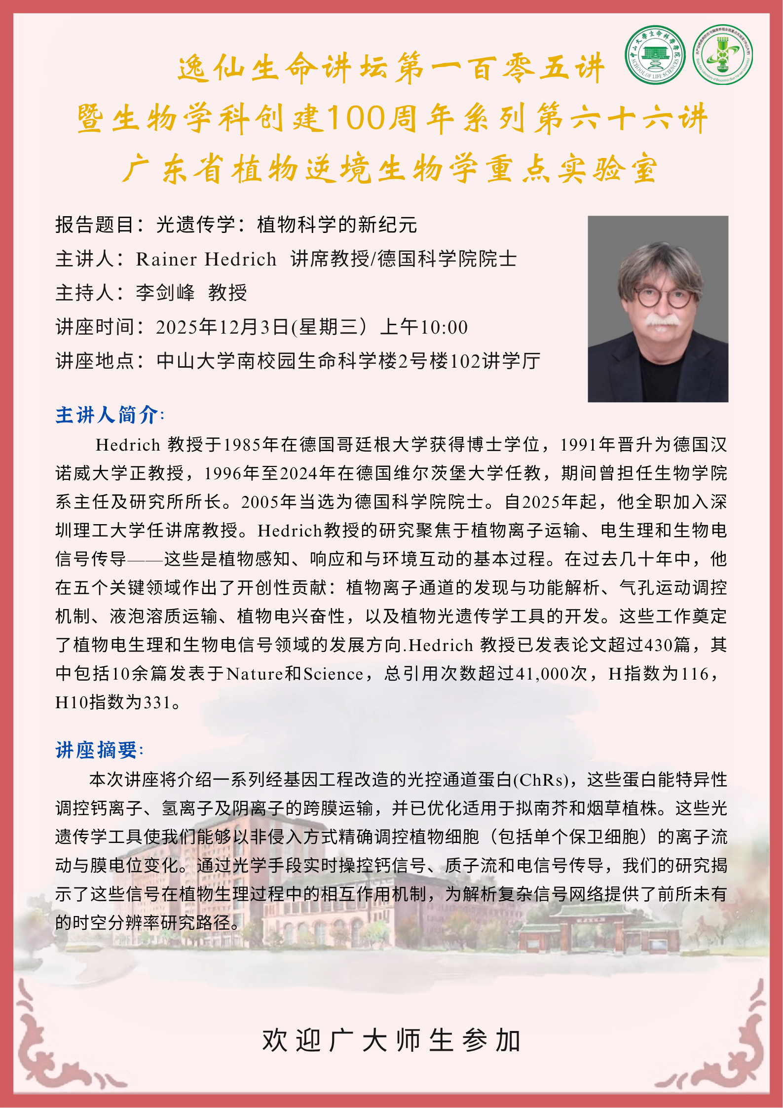 2025年12月3日海角论坛 学海讲坛第57讲暨海角论坛 逸仙生命讲坛第105讲:光遗传学:植物科学的新纪元