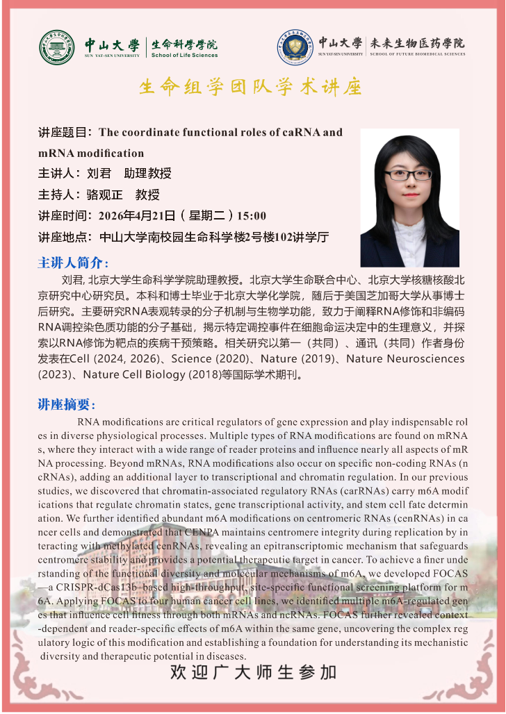 导航痕迹 海角论坛 2026年4月21日生命组学团队讲座:The coordinate functional roles of caRNA and mRNA modification 扫描此二维码分享 2026年4月21日生命组学团队讲座:The coordinate functional roles of caRNA and mRNA modification 发布人:李晶 发布日期:2026-04-14 活动时间 2026年04月21日 15:00 - 2026年04月21日 17:00